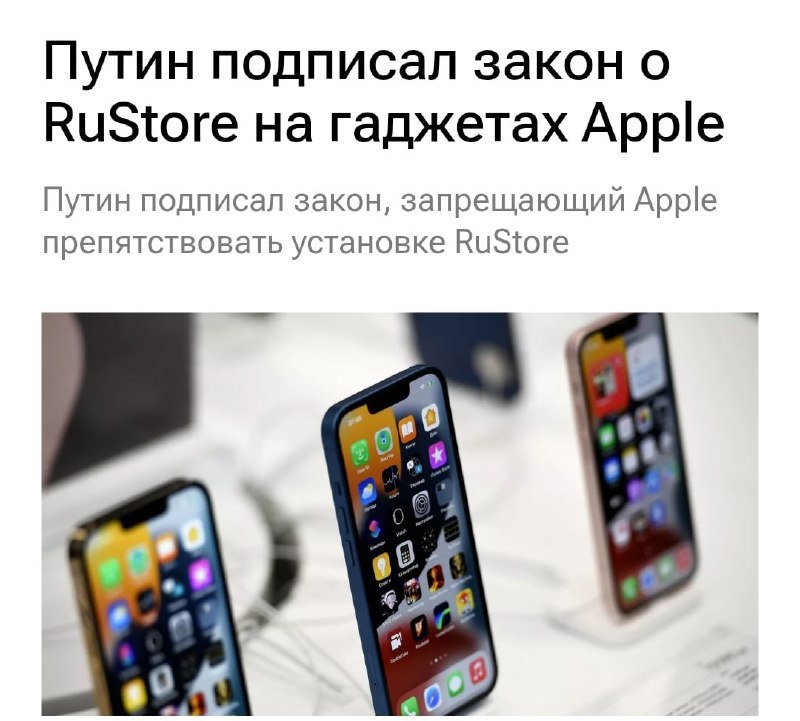 😨 АЙФОНАМ В РОССИИ ПОСТАВИЛИ УЛЬТИМАТУМ С 1 сентября в России вступает в силу новый закон, который обязывает всех производителей смартфонов предустанавливать отечественный магазин приложений RuStore. Путин уже подписал документ, и теперь все гаджеты, включая iPhone, должны будут его поддерживать. Но вот в чем загвоздка: Apple и другие иностранные бренды могут просто отказаться выполнять это требование. И тогда айфоны рискуют исчезнуть с российских прилавков. Смотри скрин – там всё наглядно. Что думаешь по этому поводу? Пиши в комменты! #Apple | ВСЁ ПРО AI | AI NEWS | Дзен | ОК