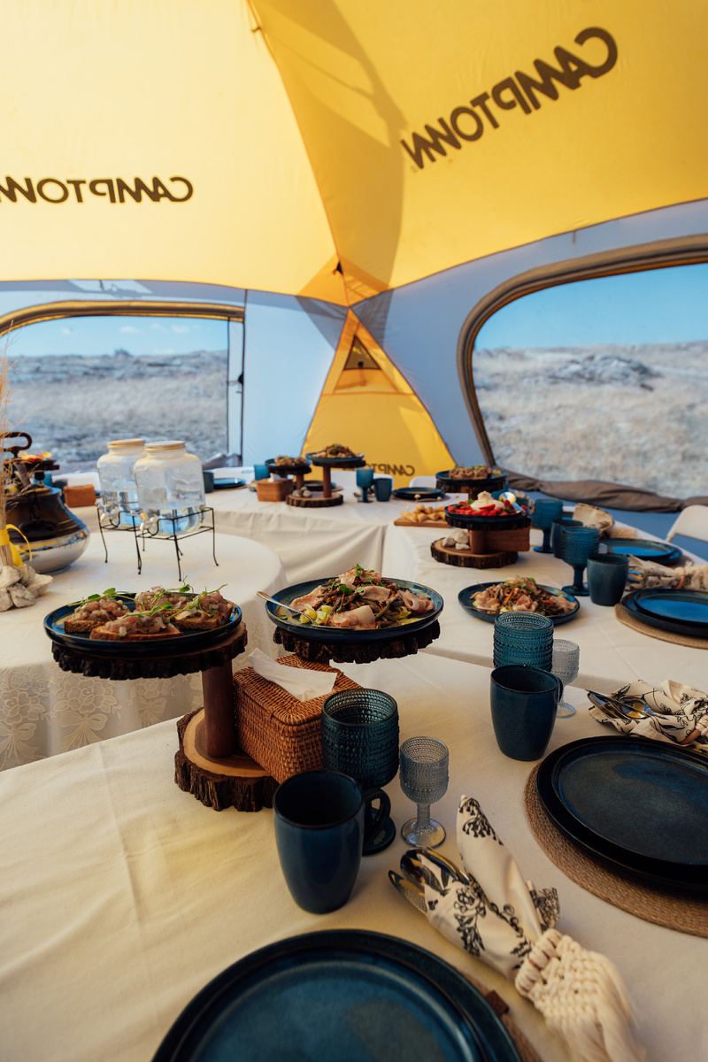 Кто был на Байкале, тот точно знает — на свежем воздухе, в окружении дикой природы, высоких гор, тайги и самого глубокого в мире озера любая еда кажется невероятно вкусной. Но есть способ возвести это гастрономическое удовольствие просто в высшую степень — устроить кейтеринг в удобном для вас месте, с сервисом и кухней, с которой не сравнится ни один ресторан Мишлен. Сейчас расскажем, как это может быть вместе с Байкаликой. Со всеми удобствами: как проводится кейтеринг на Байкале? Места для кейтеринга на Байкале стоит выбирать самые живописные: это могут быть дикие Тажеранские степи, песчаные бухты, таинственный мыс Хобой на острове Ольхон и многие другие. Главная фишка такого кейтеринга — не просто вкусно, но и головокружительно красиво. А конкретное место обсуждаемо. Обед или ужин пройдёт в абсолютном комфорте: мы обустроим просторные и стильные кемпинговые шатры, установим столы и стулья, эстетично засервируем их льняными скатертями, керамической посудой и деревянными этажерками. Вс