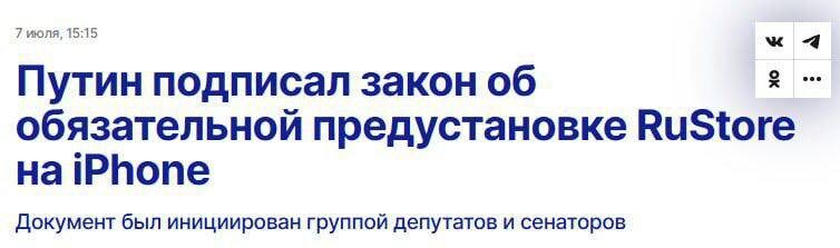 Путин обязал Apple предустанавливать RuStore на все новые iPhone и планшеты в России с 1 сентября. 👉🏻Новости №1 в Ростове 💌Прислать новость/фото