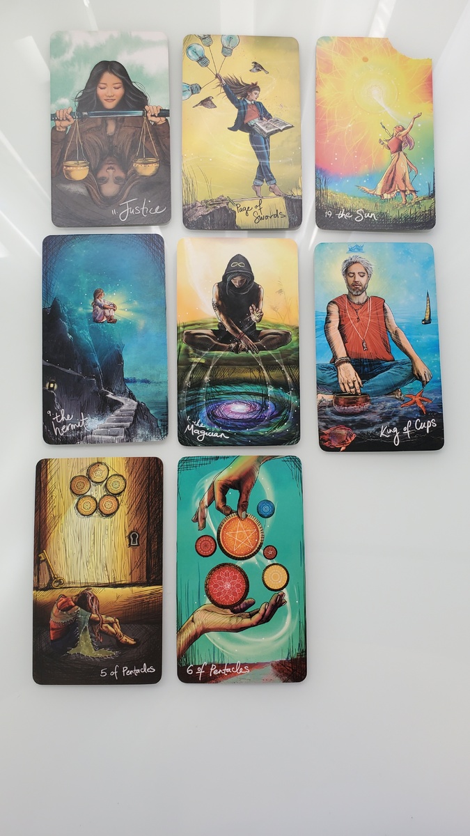 Здравствуйте! Сегодня мы посмотрим расклад, чтобы понять его чувства к вам и перспективы ваших отношений на продолжительный период. Начнем с его мыслей о вас. Здесь выпал старший аркан – Правосудие. Эта карта говорит о том, что загаданный вами мужчина склонен к прагматичному, четкому и конкретному мышлению, лишенному сентиментальности. Он опирается на факты, наблюдаемые в ваших отношениях. Правосудие указывает на его стремление к правде, ясности и поиску истины. Эмоции в его мыслях, скорее всего, отсутствуют. Его мысли сосредоточены на понимании ситуации и отношений в их нынешнем виде. Вторая карта – Паж Мечей, отражает его отношение к вам. Он проявляет интерес и любопытство, возможно, даже любознательность. Однако, это не романтическая карта. На данный момент его больше занимают конкретные вопросы, связанные с вашими отношениями, желание что-то уточнить или прояснить. Возможно, у него есть вопросы, на которые он пока не нашел ответа. Карты четко указывают на его заинтересованнос