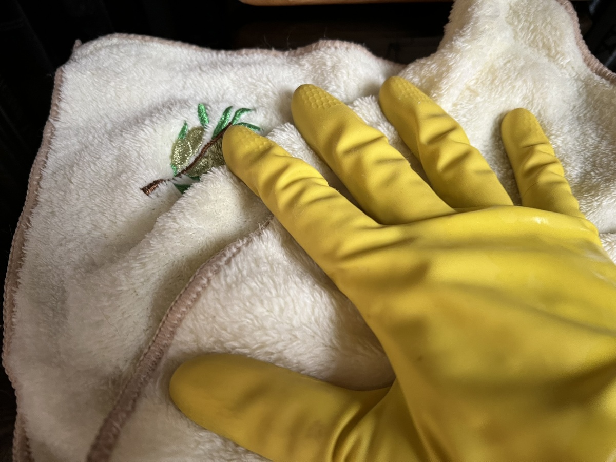 - Берём сухую тряпку — лучше всего микрофибру или флис - что-то синтетическое. У меня, кстати, отличная флисовая тряпочка из фикс-прайса, накупила их тут по случаю аж 3 штук.
