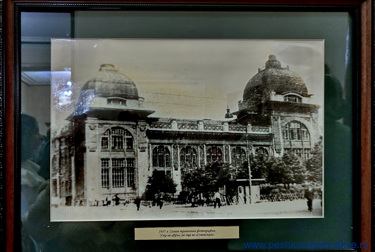 Перед входом в ресторан со стороны отеля (извините, но дальше гостиницу я часто буду называть так, как она называется официально – отель «Советский») расположена небольшая мемориальная зона. Здесь кроме фотографий «Яра» начала 20 века, установлен стенд с портретами именитых посетителей ресторана, начиная с Пушкина и заканчивая Горьким и Есениным. Естественно, что Пушкин бывал у Яра на Кузнецком мосту: