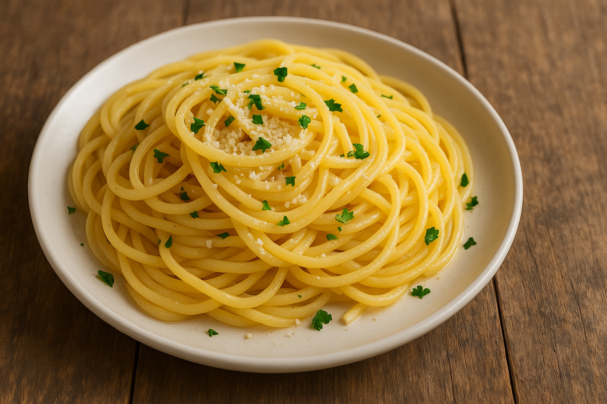 Спагетти с чесночным маслом и пармезаном — простой, быстрый и ароматный вариант ужина, который готовится примерно за 20 минут. Это блюдо сочетает в себе насыщенный вкус чеснока, нежность сливочного масла и пикантность пармезана, создавая идеальный баланс. Это блюдо — классика итальянской кухни, известное под названием Spaghetti aglio e olio (в переводе с итальянского — спагетти с чесноком и маслом). Оно происходит из региона Абруцци или Неаполя и считается одним из самых простых и аскетичных итальянских рецептов1. Изначально это была еда простых людей — шахтеров и крестьян, которым были доступны лишь базовые продукты: макароны, чеснок и оливковое масло. Несмотря на скромный набор ингредиентов, блюдо обладает насыщенным вкусом и ароматом, что делает его популярным во всей Италии и за её пределами. Интересно, что в оригинальном рецепте не предусмотрен сыр — добавление пармезана считается некоторым отступлением от классики, хотя многие современные повара именно так и подают это блюдо. Т