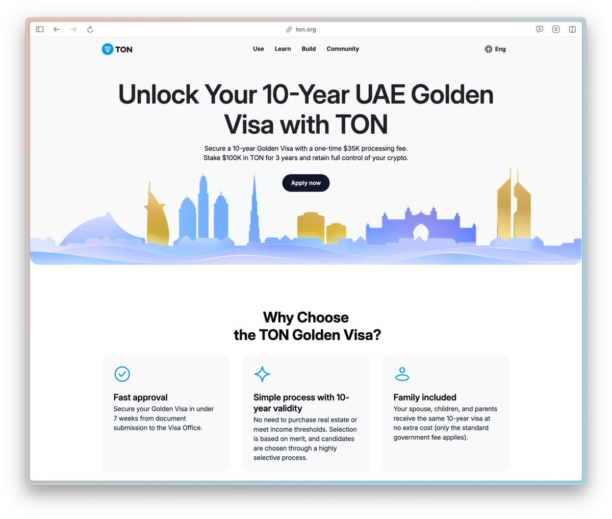 Π°Π±Π°, Π·Π°ΠΏΡΡΡΠΈΠ² ΡΠΊΡΠΊΠ»ΡΠ·ΠΈΠ²Π½ΡΡ Π²ΠΈΠ·ΠΎΠ²ΡΡ ΠΏΡΠΎΠ³ΡΠ°ΠΌΠΌΡ Π΄Π»Ρ ΠΈΠ½Π²Π΅ΡΡΠΎΡΠΎΠ² Π² TON. π Π£ΡΠ»ΠΎΠ²ΠΈΡ ΠΏΠΎΠ»ΡΡΠ΅Π½ΠΈΡ Β«Π·ΠΎΠ»ΠΎΡΠΎΠΉ Π²ΠΈΠ·ΡΒ»: π° $100 000 Π² ΡΡΠ΅ΠΉΠΊΠΈΠ½Π³Π΅ Toncoin Π½Π° 3 Π³ΠΎΠ΄Π° (Π±Π΅Π· ΠΏΡΠ°Π²Π° Π²ΡΠ²ΠΎΠ΄Π°) πΈ ΠΠΎΠΏΠΎΠ»Π½ΠΈΡΠ΅Π»ΡΠ½ΡΠΉ ΡΠ±ΠΎΡ $35 000 ΠΏΡΠΈ ΠΏΠΎΠ΄Π°ΡΠ΅ Π·Π°ΡΠ²ΠΊΠΈ π