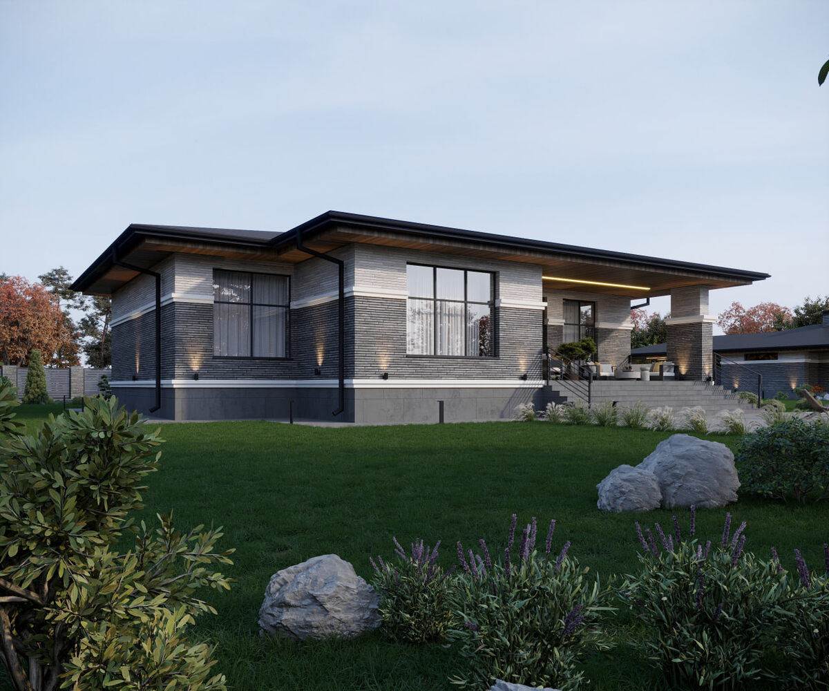 Дом, где 168 квадратных метров служат концепции уюта и ещё 28 — терраса, чтобы после вкусного ужина отдохнуть с видом на сад и притвориться, что вы на Тосканской вилле (и это работает!). Фасад дома собран как капсульный гардероб: минеральный кирпич ручной формовки, аккуратная штукатурка, кровля из гибкой черепицы. Ничего лишнего — только стиль и текстуры, которые хочется трогать. А крыльцо — тот самый жест, когда архитектура говорит: «Проходи, чувствуй себя как дома». Внутри всё, как вы любите: большая кухня-гостиная, где можно готовить ризотто и параллельно спорить, что включить фоном — джаз или плейлист 2010-х. Плюс кладовая, где прячется запас сладкого и игристого. Мастер-спальня и две — для гостей, детей или просто тишины. В общем, если у кого-то и был план «уехать за город и жить красиво», то вот он — готов! Рассчитать стоимость собственного проекта: https://arhidom36.ru/quiz