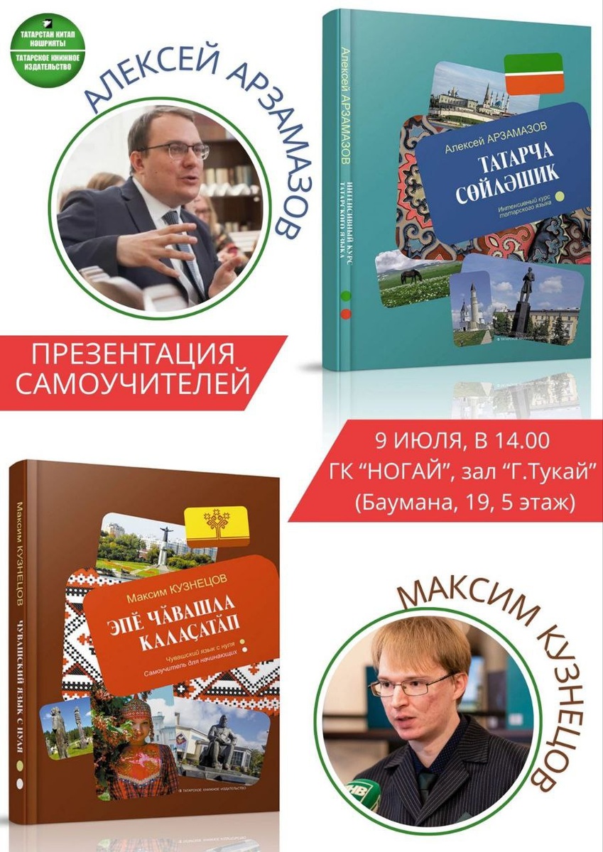 Нумай пӗлӗш çак кӗнекене куç пек кӗтнине пӗлетӗп. Нумай пулмасть вăл тинех кун çути курчӗ. Сăмах чăваш чӗлхипе самоучитель пирки. Ун çинчен «Сувар» хаçатра пӗрре мар çыртăмăр. Авторӗсем Алексей Арзамазовпа Максим Кузнецов. Тăван чӗлхене вӗренес текенсемшӗн вăл чăннипе хаклă парне пулчӗ. Ку эрнере вара, июлӗн 9-мӗшӗнче, Хусанта, Бауман урамӗнче вырнаçнă «Ногай» хăна çурчӗн «Тукай» залӗнче чăвашла тата тутарла самоучительсен хăтлавӗ пулать. Проекта ТР Раисӗ çумӗнчи тутар чӗлхине тата Тутарстан Республикинче пурăнакан халăхсен тăван чӗлхисене аталантарассипе комисси тӗрев панипе Тутар кӗнеке издательстви пурнăçланă. Хăтлавра тутар тата чăваш чӗлхисене ăнăçлă вӗренессин вăрттăнлăхӗсемпе, авторсен пурнăçӗпе тата ӗç опычӗн историйӗсемпе паллашма тата интереслентерекен ыйтусене пама пулӗ. Тата çакăнтах самоучительсен методикине тӗрӗслесе пăхма та май пулӗ, паллах, кӗнекесене туянма. Пурне те хапăл туса кӗтеççӗ. Мероприяти кăнтăрла иртсен 14.00 сехетре пуçланать. Кӗресси тӳлевсӗр.