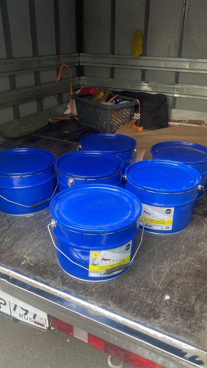 Очередная партия грунта PU ICPaints едет укреплять стяжку перед монтажом паркета.