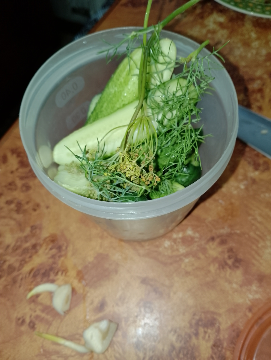 Я очень часто делаю что то по-быстрому. Это огурцы и сосиски в тесте. Огурцы порезать дольками , почистить чеснок , порезать ,не жалейте чем больше тем ароматнее получится. Укроп с зонтиком, соль. Я все сложила в баночку а можно просто в пакет целофановый, закрыть , потрясти и в холодильник , если сделать на ночь будет ещё лучше, но мы через час уже едим. Сосиски заворачиваю в слоенное тесто какое есть, и на сковороде в растительном масле обжариваю с двух сторон, 5 мин и готово это тесто жарится быстро. Сосиски на скорую руку готовы.