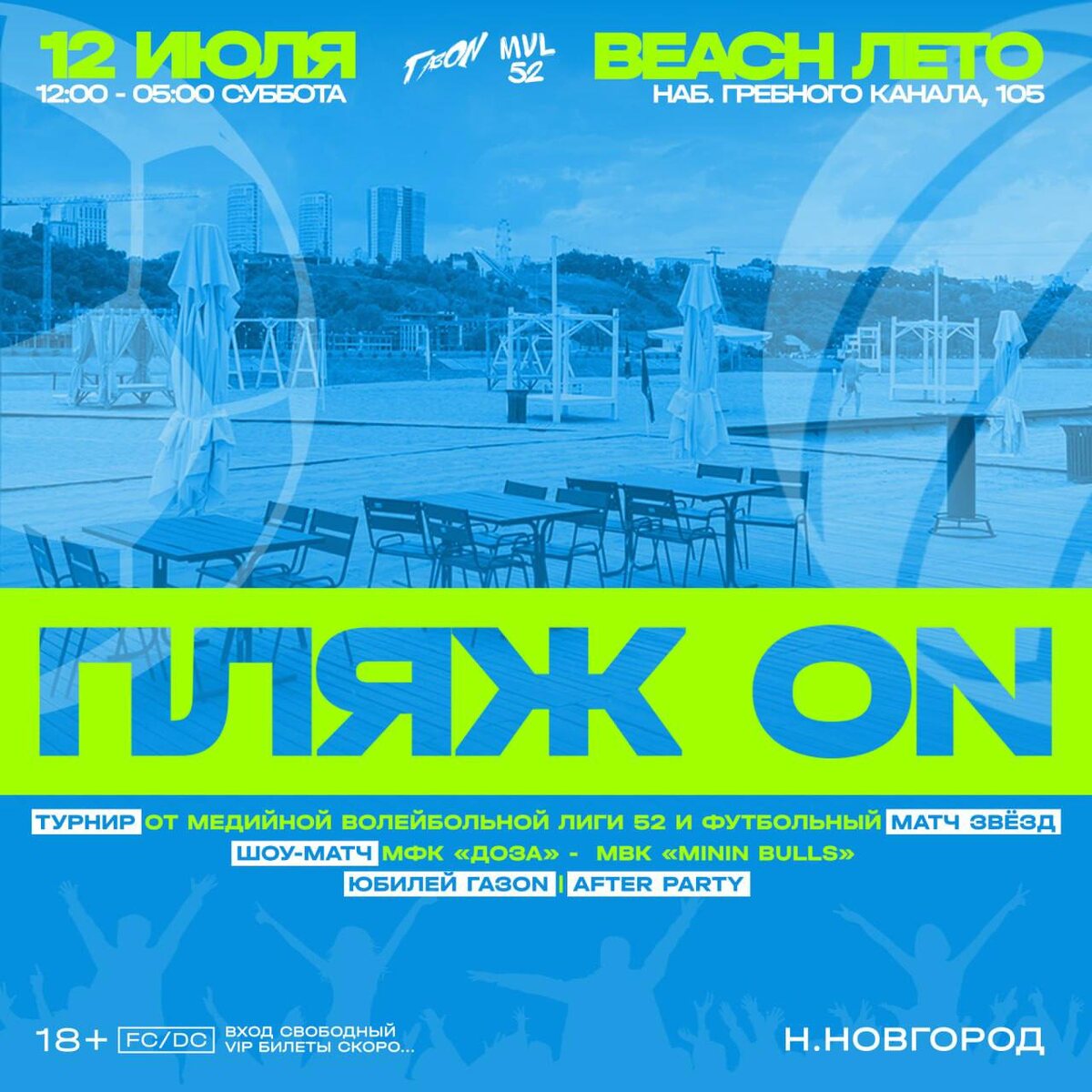 Главное спортивно-медийное событие 2025 года пройдет в Нижнем Новгороде — турнир MVL 52! 🗓 12 июля на Гребном канале пройдёт грандиозное событие, объединяющее профессиональный спорт, любительские соревнования и масштабную вечернюю тусовку. Программа события: 🏐 Медиа-турнир 4×4 от MVL 52 — звёзды волейбола, профессионалы и блогеры сойдутся в жарких противостояниях. 🏐 Любительский турнир по волейболу (мужчины и девушки). ⚽️ Шоу-матч звёзд футбола — пляжный футзал! 🏐 Шоу-матч звёзд волейбола (суперлиги и блогеры). 🔥 Эксклюзив: «Доза-Агро» vs «Минин Буллс» — медийное волейбольное противостояние! Почему это событие нельзя пропустить? ✅ MVL 52 — медийная лига нового поколения, где спорт встречается с медиаформатом и создаёт уникальный контент для всей страны. ✅ Топовые российские спортсмены и популярные блогеры, включая ГазON, объединяются, чтобы подарить зрителям незабываемые эмоции и драйв. Где? Набережная Гребного канала, 105, BEACH ЛЕТО Когда? 12 июля, с 12:00 до 05:00