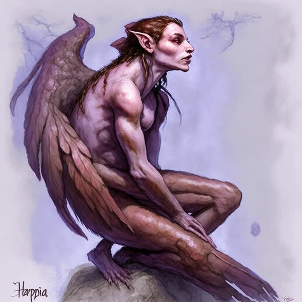 В древнегреческой мифологии гарпии занимали особое место среди божественных существ и сами являлись бессмертными. Они были дочерями морского божества Тавманта и океаниды Электры, что делало их родственницами других могущественных существ. Гарпии служили исполнителями воли богов, наказывая провинившихся смертных. Наиболее известные истории связаны с их ролью похитительниц душ и стражниц подземного мира. Они охраняли вход в Тартар и помогали переносить души умерших в подземное царство. В мифе о Финее гарпии мучили царя, похищая его пищу, пока их не прогнали аргонавты. Слово «гарпия» происходит от древнегреческого глагола harpazein, что означает «хватать», «похищать». Это название точно отражает сущность этих существ, которые были известны своей способностью внезапно появляться и похищать души или предметы. Гарпии представляли собой удивительных существ с телом птицы и головой женщины. Их изображали с острыми птичьими когтями, мощными крыльями и длинными, спутанными волосами. Лицо гарпии