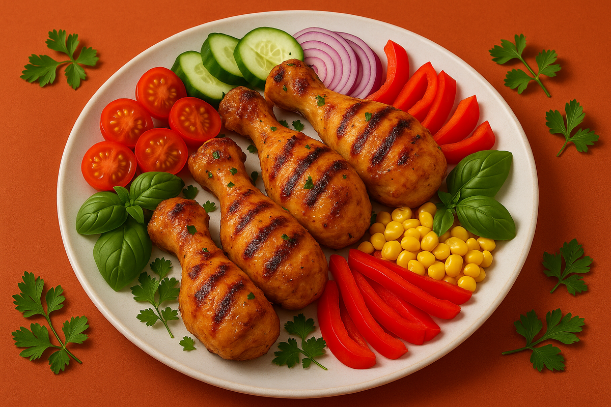 Приятного аппетита! Это блюдо сочетает в себе аромат дымка и свежесть овощей, а также насыщенный вкус куриного мяса, приготовленного на открытом огне — традиция, которая объединяет людей уже тысячи лет. Гриль — один из древнейших способов приготовления пищи, уходящий корнями в эпоху, когда человек впервые приручил огонь. Археологические находки свидетельствуют, что первые приспособления для жарки на открытом огне появились 3–6 тысяч лет назад. В Европе долгое время мясо готовили на вертеле, что было неудобно и занимало много времени. Переломным моментом стало знакомство европейцев с культурой американских индейцев, которые использовали решетчатые конструкции из веток — «барбакоа». Это устройство позволило равномерно и вкусно прожаривать мясо, что быстро завоевало популярность и дало начало современному барбекю. В XX веке гриль и барбекю стали настоящей культурой и стилем жизни, особенно в США, где появились специализированные гриль-бары и ежегодные соревнования. Современный гриль с кры