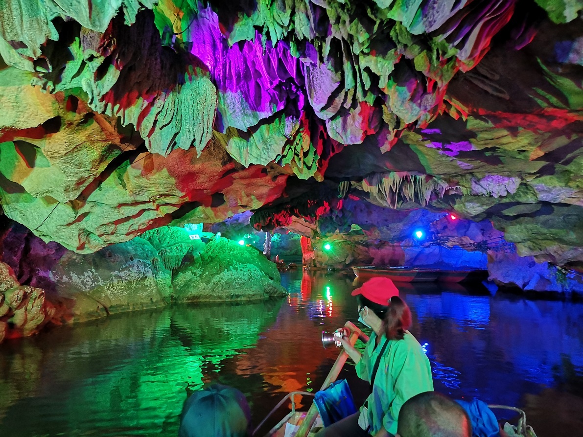 Подводная река в пещере на лодочке + сухопутный маршрут. Итого 3 км. За 1 час все осмотрели. Тем кто ни разу не был в большой пещере - очень понравится.