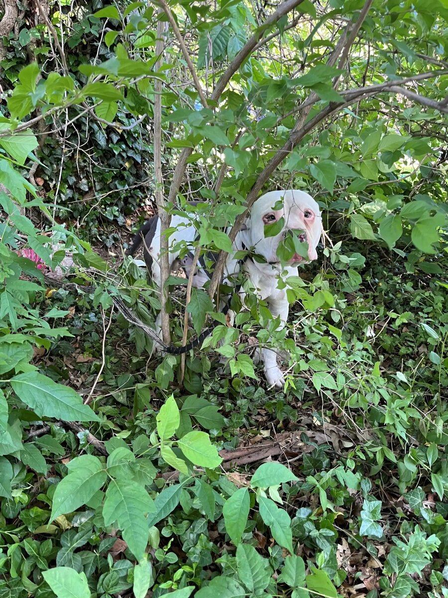 В прошлом месяце офицер Metro Animal Services в Луисвилле, штат Кентукки, отреагировал на вызов о собаке, которая была брошена в кустах на три дня. Когда офицер прибыла, она обнаружила собаку, привязанную к небольшому дереву на потертом поводке. Рядом стояла пустая розовая пластиковая миска. Звонивший упомянул, что собака стала агрессивной, когда к ней приблизились, но, по словам офицера на месте, была вне себя от радости, увидев, что кто-то направляется к ней. После неудачной попытки перерезать поводок болторезом офицер использовала нож, чтобы освободить собаку. Стефани Джексон, сотрудник службы Metro Animal Services, сказала, что собака прибыла в их приют в довольно хорошем состоянии, учитывая все испытания. После нескольких дней одиночества на улице, к счастью, у него было всего несколько укусов насекомых, и он отчаянно нуждался в купании. Персонал приюта привел его в порядок и назвал Дабья. Насколько стало известно, Дабье около 3 лет, и это одна из самых дружелюбных собак, с котор