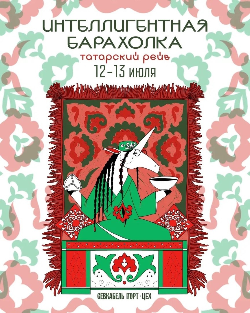 12 и 13 июля 🪸 Маркет «Интеллигентная барахолка» Дизайн-маркет с десятилетней историей собирает локальные бренды и творцов. В этот раз участников ждёт Татарский рейв с национальной кухней и атмосферными находками. Где: Севкабель Порт, Кожевенная линия 40Д, м.Горный Институт Когда: Сб-Вск, 12–13 июля 12:00-21:00 Вход: Бесплатно @Давай с нами, Петербург || Сохранить в боте