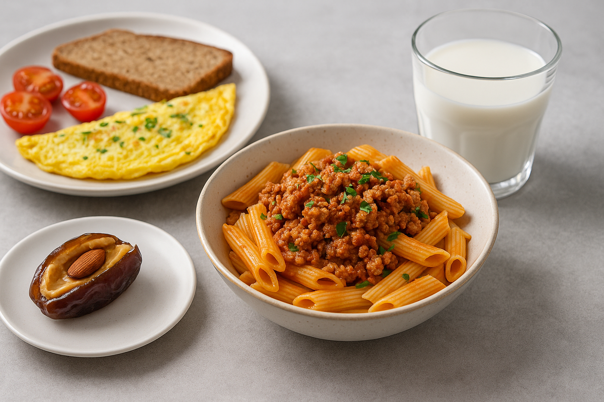 ✅ День 3 — Омлет, паста и финик (1310 ккал)