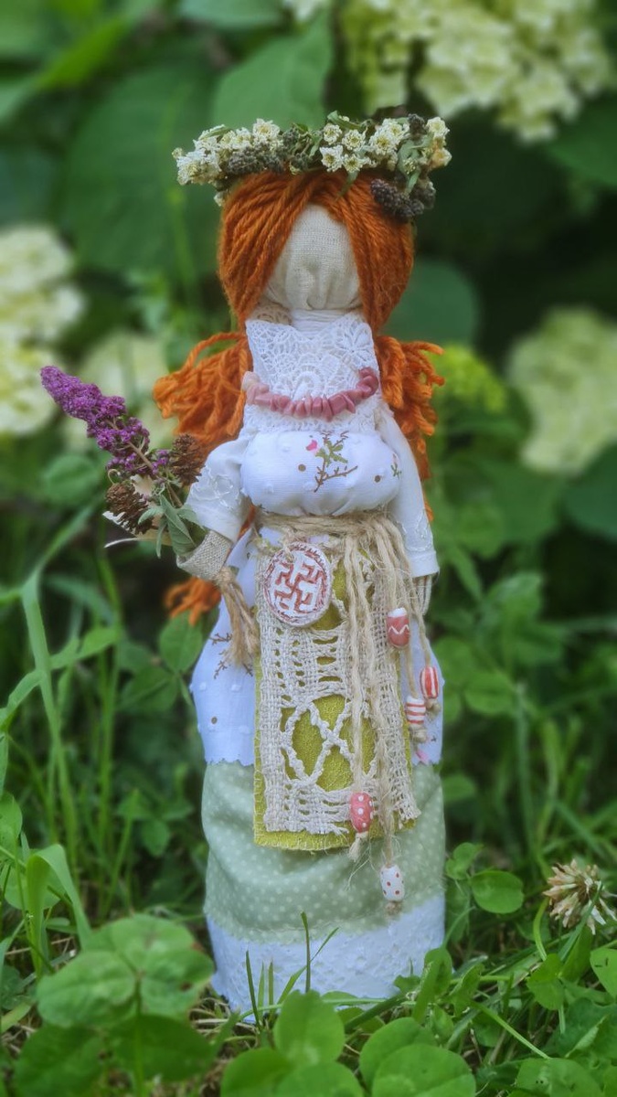 Смотрите чего сделала😍 Обережная кукла "Одолень-трава" Ниже история куколки👇 Обережная кукла-мотанка "Одолень-трава" – это древний славянский оберег, связанный с защитой от злых сил, болезней и негативной энергии. Её название происходит от мифического растения "одолень-трава", которое в народных поверьях считалось магическим средством против нечисти и хворей. История и значение куклы 🌼 Происхождение названия - "Одолень-трава" – это легендарное растение, упоминаемое в славянских заговорах и обрядах. Считалось, что оно обладает силой "одолевать" (преодолевать) зло, порчу и болезни. 🌼 В реальности под этим именем могли подразумевать разные травы (например, кувшинку белую, зверобой или молочай), но в обережной магии оно стало символом защиты. 🌼Создание куклы 💛Кукла изготавливалась без иглы и ножниц – только путём скручивания и завязывания ткани или нитей. Это делало её "живой" и нерушимой для злых сил. 💛 Часто её набивали лечебными травами (зверобоем, ромашкой, мятой), усиливаю