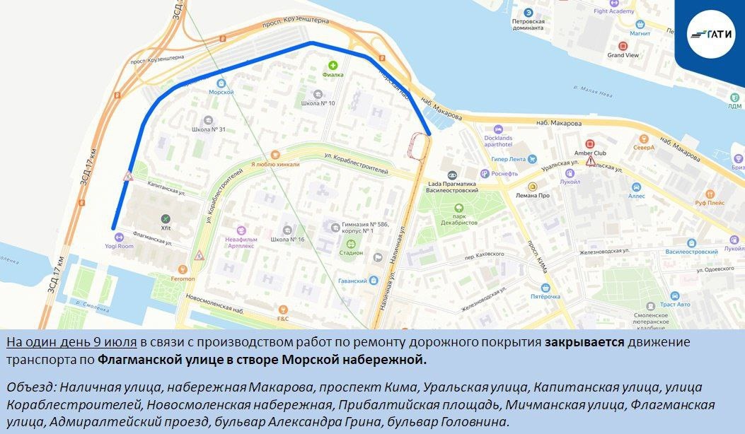 ⛔️🚧 В Петербурге ограничат движение в пяти районах Пресс-служба Государственной административно-технической инспекции рассказывает: с 7, 8 и 9 июля начнутся новые ограничения движения транспорта по Северной столице: 🔺 Василеостровский район: 9 июля закрывается движение транспорта по Флагманской улице в створе Морской набережной. 🔺 Колпинский район: с 8 по 24 июля закрывается движение в городе Колпино, Сапёрный переулок от Загородной ул. до ул. Севастьянова. 🔺 Петроградский район: с 9 по 20 июля ограничивается движение в Вяземском переулке от ул. Профессора Попова до Песочной наб. 🔺 Петродворцовый район: по 18 июля закрыто движение по улице Демьяна Бедного от Привокзальной площади до Ропшинского шоссе в Петергофе. 🔺 Пушкинский район: с 8 июля по 12 сентября ограничено движение в городе Пушкине (Петербургское шоссе от Витебского пр. до площади Египетские Ворота, включая площадь Египетские Ворота, перекрёстки и боковые проезды). Фото: ГАТИ Петербургский дневник
