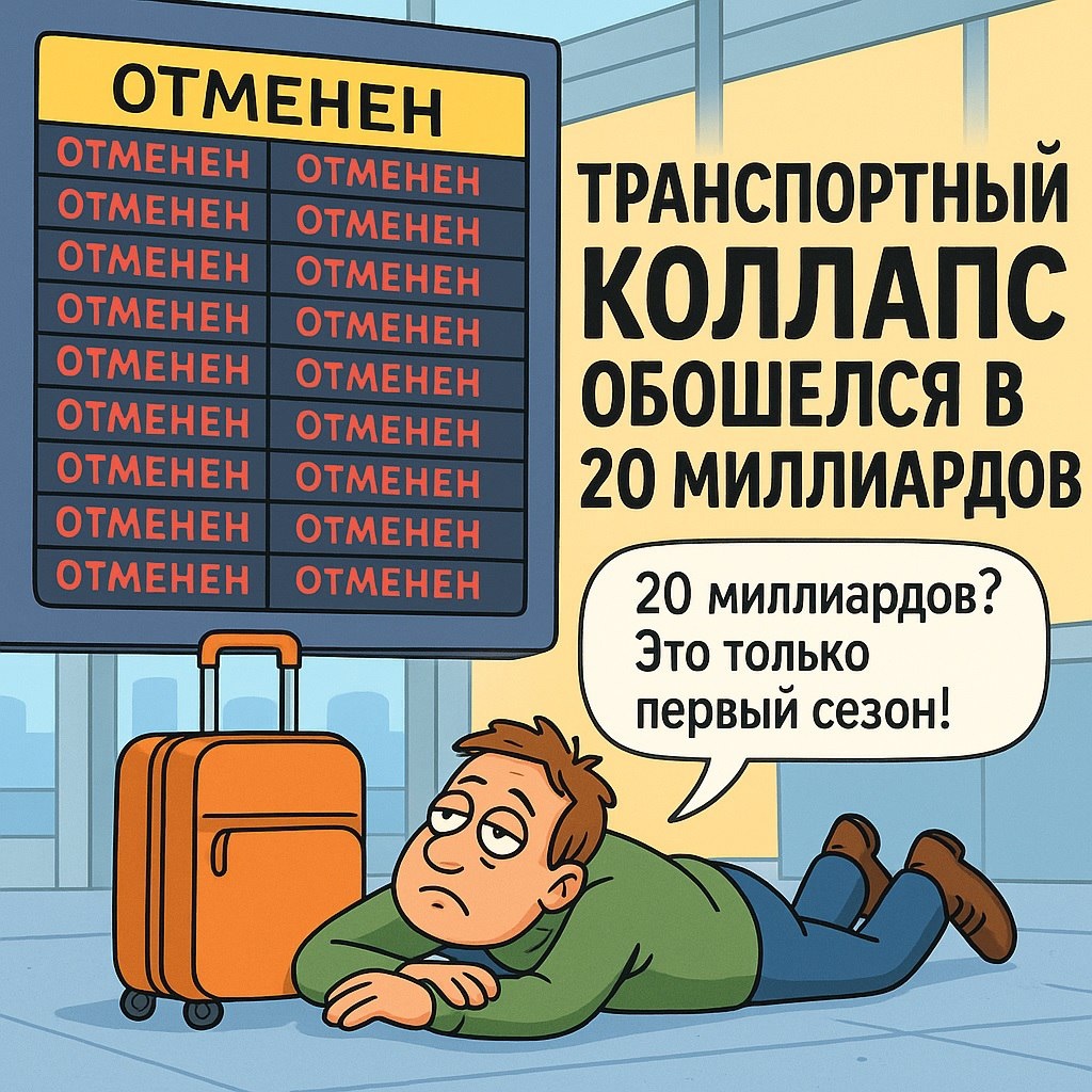 5–6 июля. День, когда небо сказало: «Работать? Нет, спасибо!» Итак, около 20 миллиардов рублей. Нет, это не новый танк, не мост, не олимпиада. Это стоимость российской версии игры «Управляй Аэропортом: паника, отмены, бег с чемоданами, летчики в экстазе». 5–6 июля в трёх аэропортах случился транспортный коллапс. Система сказала: «всё, хватит, я устала». Рейсы отменялись пачками, люди спали на полу, и, кажется, только киоски с водой чувствовали себя прекрасно — они всегда прибыльны в апокалипсисе. 500 рублей за бутылочку воды, ммм! Ох уж этот беспощадный русский сервис:) Что в итоге? Ущерб — до 20 млрд рублей. Люди — без еды. Самолёты — без вылета. Чемоданы — отдельно от хозяев. Поддержка авиакомпаний — "напишите на почту, ответим в течение 30 рабочих дней". А теперь вишенка — ассоциации пассажиров предложили создать единое окно для ЧС. Мол, «пусть всё будет централизованно». Ага. Только в нашем случае "единое окно" — это когда ты орешь в него на втором часу ожидания рейса, а оно зак