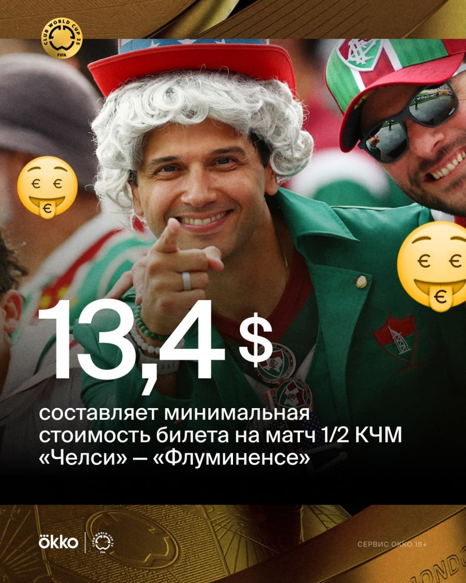 Как сообщает The Athletic, еще вчера стандартная цена билета на матч «Челси» — «Флуминенсе» составляла чуть более $ 470. За один день стоимость упала в 35 раз 🫣 Выпить стакан пива или съесть хот-дог на стадионе выйдет дороже, чем увидеть полуфинал КЧМ своими глазами... 😳