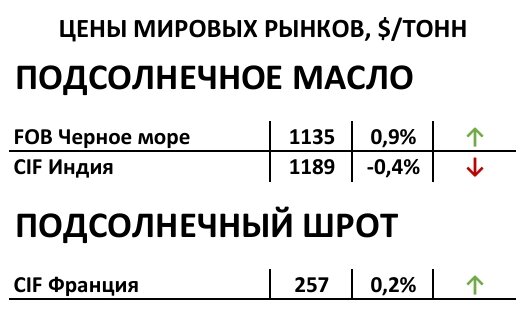 - Подсолнечный шрот - 219,8 $/Т (+1,5 $/Т)