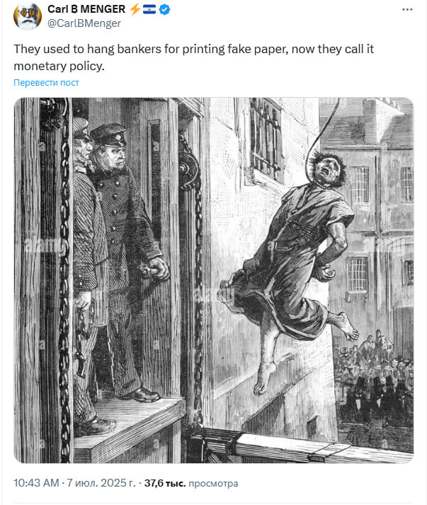 Раньше банкиров вешали за печатание фальшивых денег, а теперь это называют денежно-кредитной политикой.