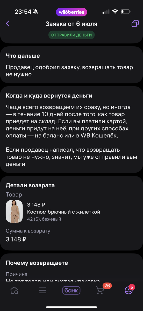 За честность мою наверное… Приветствую! Решила я тут затариться одеждой летней, дожди к нам вроде бы как закончились, легкой летней одежды у меня оказалось мало. Надо обновиться! Сказано - сделано! Выделила на это дело 20 тысяч и на ВБ! К слову сказать, у меня зарплатный проект в ВТБ, там же я плачу подписку ВТБ плюс, у меня от этого свои плюсики) По подписке за 299 рублей, я практически каждую неделю получаю на выходные +1 дополнительную категорию кэш бека на субботу и воскресенье. И обычно 3 из 4 раз мне попадается 5% ВБ. Купила сертификат на 20 000 и получила 1 000 рублей кэшбека) оформляем? Заказала я значит костюм брючный - брюки и жилетка. Пришла забирать, пакет на стойке как полагается вскрываю и смотрю что то цвет не такой как ожидалось, больно серый какой-то… На бирке смотрю 42 бежевый! Ну думаю может освещение такое в ПВЗ. Проверяю молнию на брюках беру жилетку, бегло осматриваю на месте ли все пуговицы и чешу себе в примерочную. Штаны натянула, дошло дело до ж
