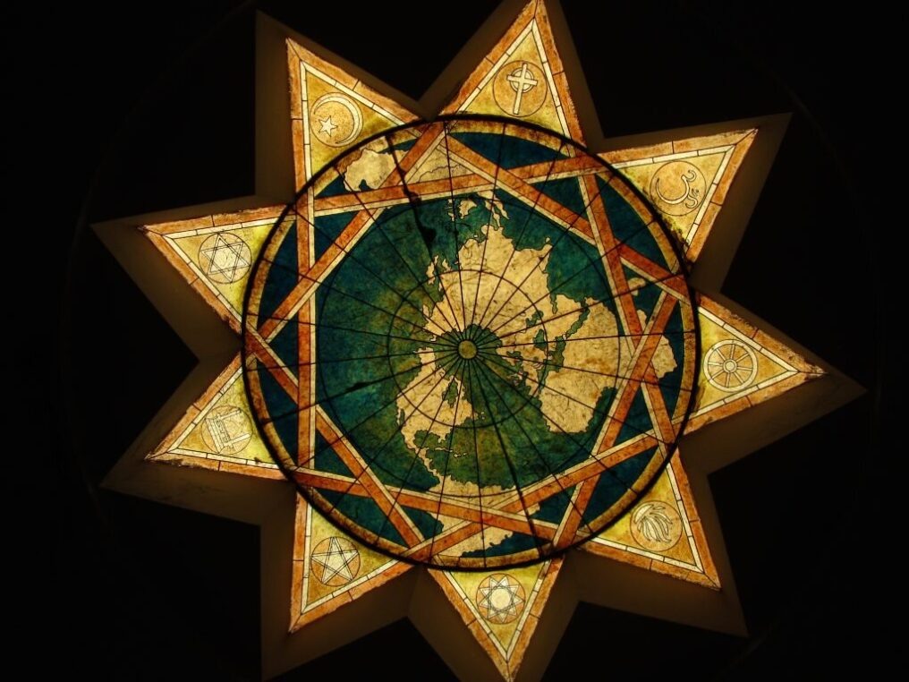 Официальным символом считается пятиконечная звезда, но на практике почти всегда изображают девятиконечную. Почему? Да потому что девять — священное число для бахаи. Оно символизирует совершенство и завершённость.
