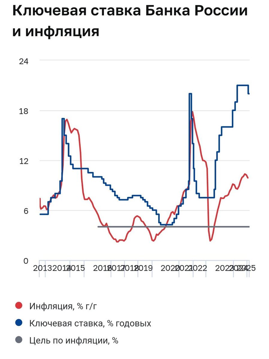 🔥 Ключевая ставка 20% — экономика трещит по швам! Почему акции не спасёт ни одно снижение и что ждёт рубль и бизнес в 2025? Снижение ключа не приведёт к росту акций существенно. Причина более глубокая и фундаментальная, 22 года в РФ инфляция была выше ключевой ставки, это называется отрицательная ключевая ставка . И бизнес у нас привык жить при отрицательных ставках, При таких условиях, рубль всегда девальвируется и цены всегда растут, С 2022 года стратегия в стране поменялась. Теперт нам без разницы, какая будет ключевая ставка, 20% или 12% Если она будет значительно выше инфляции, То рубль будет всегда укрепляться и товары будут дешеветь, Соответственно в публичных компаниях будут падать доходы и дивиденды, Акции будут падать в цене. А сейчас России рецессия и переходный период. Если мне не верите, Вам ЦБ говорит, инфляция будет 4%, А ключ сейчас 20% Вот что происходит в экономике, разверните и читайте 👇 📉Греф: Признаков того, что экономика России стала резко тормозить, достат