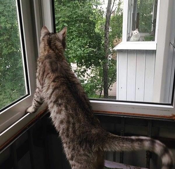 Июль, Июль... Ты так прекрасен! Ну как тебя не восхвалять?! Вокруг так много ярких красок, Не хватит лап, чтоб сосчитать! * Но мне совсем не до веселья... Щас кто-то скажет: "Вот те на!". Всё дело в статусе... Я пленник! Я раб балконного окна! * А на балконе у соседей Маруся день-деньской грустит... Под стать шекспировской Джульетте Она за мной с балкона бдит! * Марусю взглядом вожделея Через стеклянный флёр окон, Я, как шекспировский Ромео Гляжу на милый мне балкон! * В разлуке трудно жить влюблённым (ВильЯм Шекспир ещё писал)... Любить нельзя дистанционно - Нам не дано входить в астрал! * Жаль, нет кошачьего смартфона... Инет бы нАсмерть нас связал!!! * Кот😺😁Natali *
