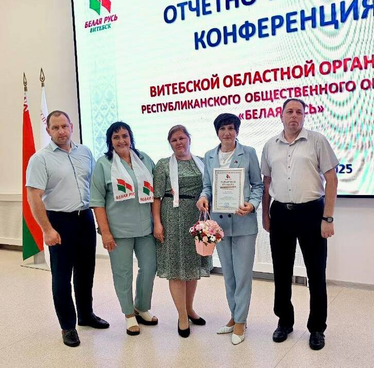 🔴Сегодня представители районной организации РОО «Белая Русь» приняли участие в VI внеочередной отчетно-выборной конференции Витебской областной организации РОО «Белая Русь» 🔵На конференции обсудили итоги работы организации за 2024 год и первое полугодие текущего. Также избрали членов Совета и делегатов на VI внеочередной Съезд РОО «Белая Русь». 🟠Председателем Витебской областной организации РОО «Белая Русь» переизбран Дмитрий Демидов, председатель облсовета депутатов. ✔️За активную гражданскую позицию и значительный личный вклад в реализацию Программы РОО «Белая Русь» Почетной грамоты удостоена заместитель председателя Бешенковичского райисполкома Татьяна Жданович, ранее возглавлявшая районную организацию.
