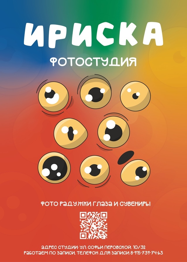 Так уж случилось что кроме печати, моделирования, приходят заказы на верстку макетов, дизайн афиш, визиток. Первое с чего я начну, это с одного проекта - фото радужки глаза. Основатель проекта, мой приятель, который достаточно молод, на данный момент успешно продал студию. Новые владельцы хотели поменять оформление, я лишь предложил концепцию. Так я сделал основу, дальнейшее оформление ребята делают сами, так как я вышел из проекта, но упаковал это в полноценный кейс. Оформление у проекта было похоже на схожие студии по фото радужек глаза, само же обновленное оформление пришло в голову без названия. Название «Ириска» дал новый основатель проекта, что звучит необычно и сочетает английское слово «iris» - радужка. Не хотелось использовать один какой-то цвет, поэтому был выбран градиент из 4 цветов. И нет… Это не радуга. В качестве графического элемента были выбраны различные виды радужек. Ведь главный девиз проекта - то что радужка у каждого человека индивидуальна! Дальше во всем оформлен