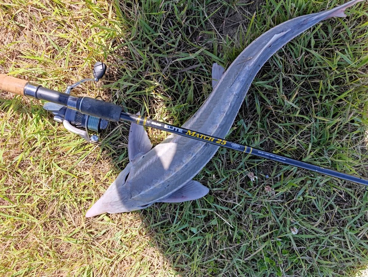 В целом, работа рыбовода на платных прудах не из лёгких. Тут тебе и кормление рыбы в нормальном таком объеме, и контроль за рыбаками (не всегда вменяемыми), и сдача беседок в аренду, продажа, выдача и ремонт инвентаря, уход за береговой линией и ещё много чего. Иной раз еле ноги волокешь в конце смены. Но бывают в этом деле и приятные моменты. Сегодня, например, срочно понадобился осетр для нужд предприятия, а его всего раскупили. Что делать? Брать удочку и ловить на общих основаниях только желательно быстро и без осечек. Взял я дежурную свою удочку, а именно Salmo Elite Match 25, немного осетрового комбикорма,червя и отправился на водоем. Осетровый комбикорм - это специальные гранулы произведенные из рыбьей муки. Наверняка есть в их составе и ещё что-то, но основа - белок. Помимо осетра на таком комбикорме выращивают и форель. И пятнистая, и носатый очень неплохо на него собираются и удерживаются в точке ловли. Так что если окажетесь когда на форелятнике или на осетровом каком платник