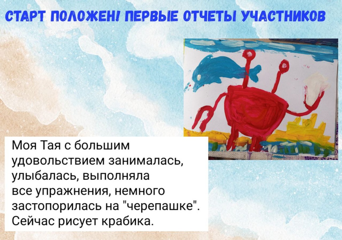 Участники не просто сделали веселую 🌊морскую зарядку для язычка, но и оживили Логокрабика на бумаге. Вот какие весёлые крабики получились ❤