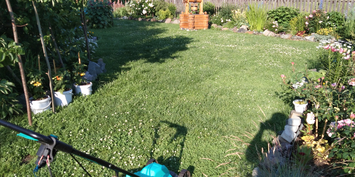 Всем тёплый привет!🤗🌹 У нас прошли хорошие дожди, хоть стало посвежее на улице. Жара плюс дожди, а главное тёплые ночи- отличный рост у растений в саду и огороде. В первую очередь конечно прёт трава. Бесконечные прополки в огороде. Газон на моей лужайке хорошо распушился. Сеяла специально с добавлением клевера. Он более устойчив к жаре, хорошо и быстро разрастается. Конечно без сорняков у меня не получилось сделать лужайку, глухих заборов нет, кругом трава и соседский участок заброшен. Семена летят со всех сторон. Этот волшебный запах свежескошенной травы😍 сразу вспоминаю покосы, этот тихий ужас на жаре с паутами и комарами и со всевозможными кусающими вампирами🤦 Уже вид гораздо лучше😊 Из минусов газона из клевера- это конечно бесконечные цветы, а где цветы- там и пчёлки. Но когда цветёт белый клевер, это смотрится тоже довольно симпатично. Такой лёгкий, природный стиль. У всех конечно вкусы разные, мне нравится и цветущий клевер и ровная стриженная зелёная гладь. Меня б