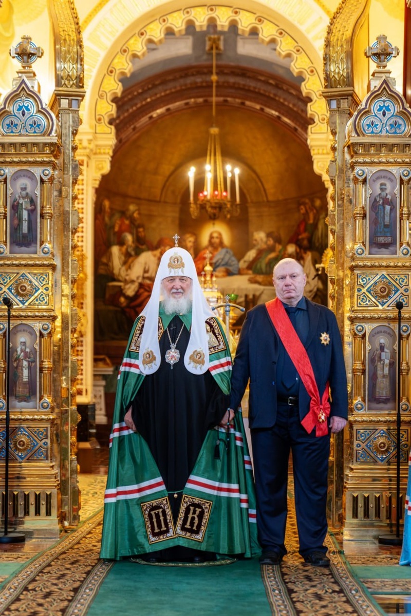 Патриарх Кирилл наградил миллиардера Владимира Потанина орденом Александра Невского I степени. Награда была вручена за особые заслуги в деле защиты Отечества, укрепления межнационального согласия, развитие международных церковных связей и за вклад в сохранение памяти святого князя. Фото: пресс-служба Патриарха Московского и всея Руси Spletnik