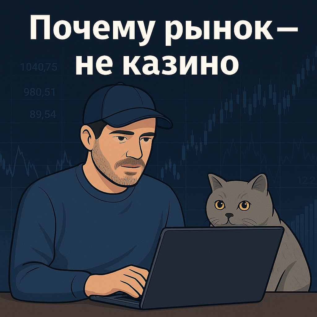 Когда я начал инвестировать, многие вокруг говорили одно и то же: «Зачем тебе это? Это же как казино. Сегодня повезло, завтра проиграл». И в начале я даже соглашался. Казалось, что акции ведут себя хаотично: сегодня взлетели, завтра упали, послезавтра снова выросли. В голове сразу всплывал образ казино: столы, рулетка, счастливчики, которые кричат от радости, и те, кто уходит домой без копейки. Но однажды я задал себе простой вопрос: действительно ли рынок — это просто игра удачи? И тогда начал разбираться. В казино всегда против тебя Самая большая разница между рынком и казино в том, что в казино всегда выигрывает заведение. В любом случае. Там всё построено на математическом преимуществе, которое не зависит от того, как сильно ты стараешься. В рулетке или слотах все решения случайны. Ты не можешь предсказать результат, не можешь влиять на него, не можешь что-то проанализировать или улучшить. Там нет фундаментальной ценности, там есть только вероятность. На рынке ты становишься совлад