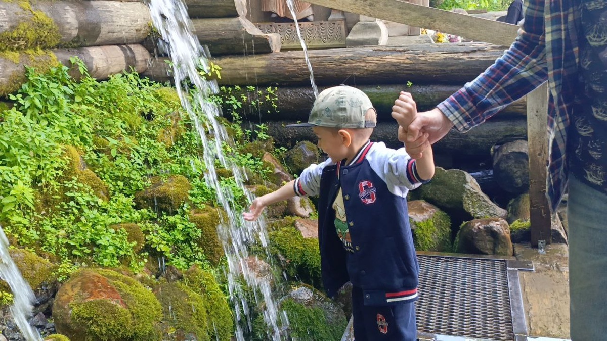 Неподалеку от Сергиева Посада есть очень интересное место – водопад Гремячий ключ, здесь подземные воды стекают с 30 метровой высоты. Мы давно слышали об этом месте, но доехали только сейчас. К слову, добраться сюда можно только на машине, либо вместе с туристической группой. Это место часть Троице Сергиевой Лавры, здесь находится несколько деревянных храмов, в которых периодически проходят службы. Территория облагорожена, есть кафе, магазины, деревянные дорожки и резная лестница возле самого источника. Очень приятное место для прогулки. Мы поднялись на самый верх к источнику, выглядит очень красиво. Но раньше было более масштабно, сейчас водопад видоизменился из-за того, что часть известнякового склона обрушилась. Много людей приходят с бутылками, чтобы набрать воды, по составу она близка к кисловодскому нарзану. Бутылки можно купить в сувенирном магазине. Есть несколько купелей и раздевалки, люди окунаются в воду из источника. Мы приехали спонтанно, поэтому не были готовы к тому,