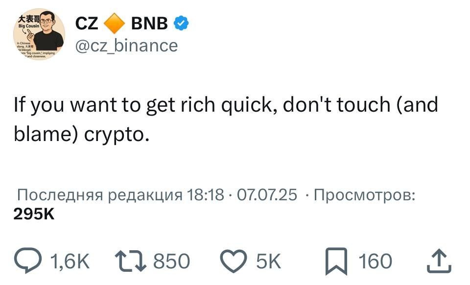CZ: хотите быстро разбогатеть - не лезьте в крипту 😐