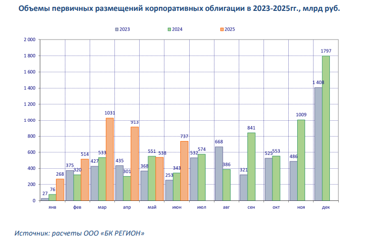 Листая аналитику "БК Регион" за чашкой утреннего кофе, пыталась разобраться в магии долгов и трендов (с цифрами, но без снотворного эффекта)👌В июне 2025 года компании продолжили занимать деньги с таким азартом, будто объявили последнюю распродажу бизнес-кредитов. Причем чем дороже становились займы (20% против прошлогодних 16%), тем активнее рос спрос - 756,5 млрд рублей против 343 млрд в июне 2024-го. 👉Что произошло? Корпоративные облигации в июне 2025 года взлетели как шашлык на майские праздники: Банки заняли всего 2.8% (21.5 млрд ₽), но выпустили 49 из 153 облигаций — словно раздробили один крупный долг на мелкие «кусочки», чтобы не пугать регулятора) 🔹 Купонные ставки снижаются: 🔹 Сроки меняются: 1. Избегают "кредитного капкана" Старые облигации часто содержат жёсткие ковенанты (например, запрет на новые займы или требование поддерживать определённый уровень EBITDA). Взяв новые дорогие облигации, компания: 2. Спасаются от дефолта Если компания понимает, что не сможет обслу
