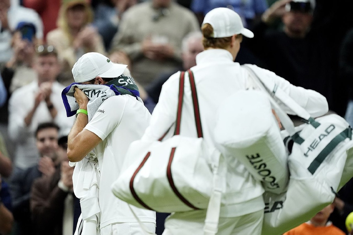 Фото: Димитров в слезах покидает корт после снятия с матча с Синнером, в котором вёл 2:0