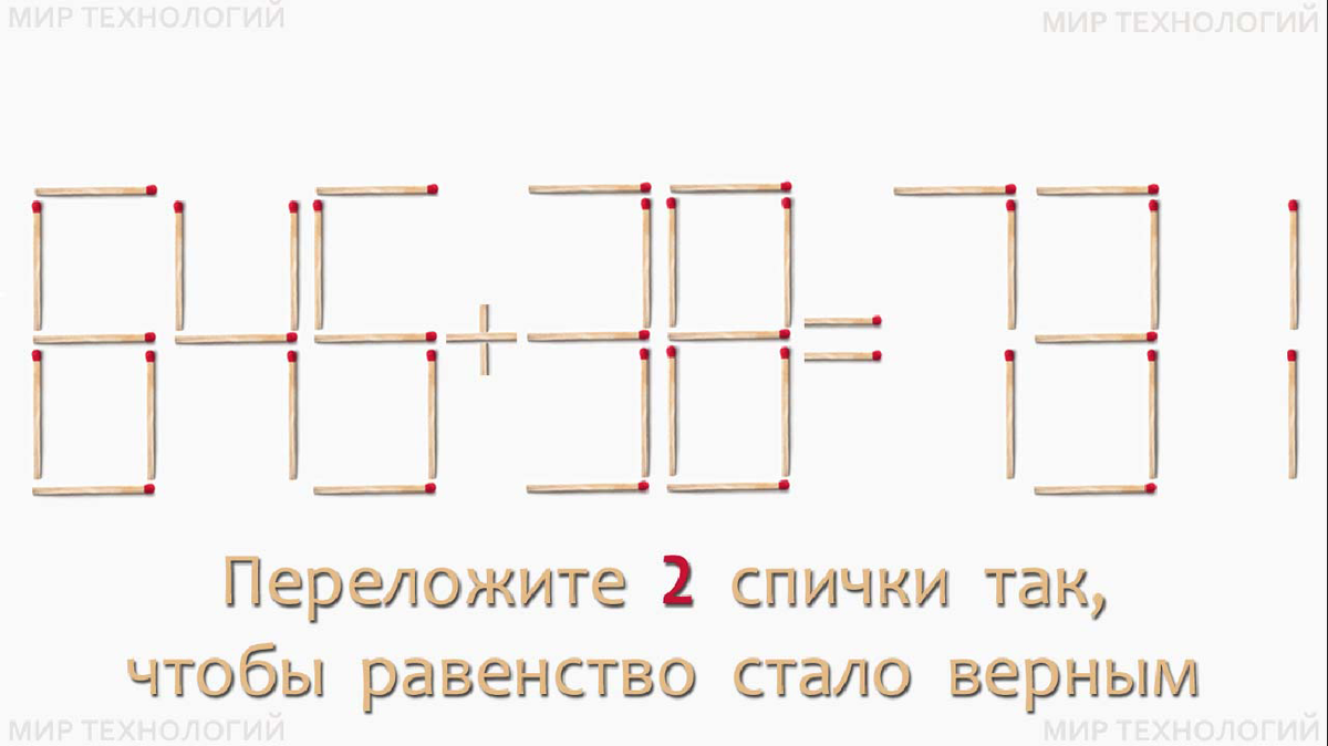 Задача со спичками № 549 (645+38=731) - переложите 2 спички так, чтобы равенство стало верным