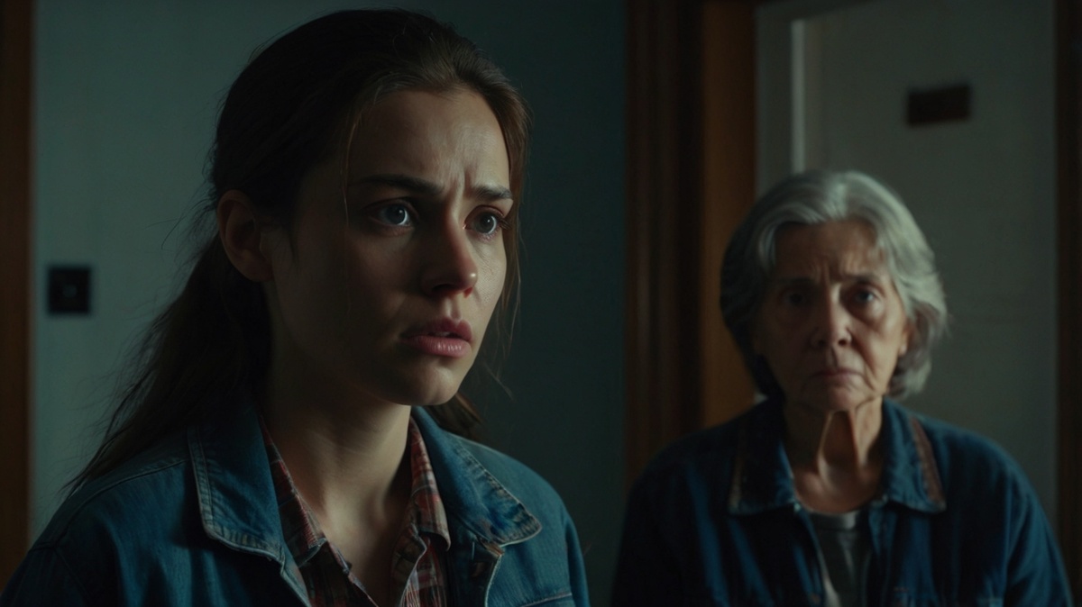 Чуть нахмурилась, взгляд — в сторону. Ни слёз, ни истерики. Только эта тишина — та, что звенит сильнее, чем крик.