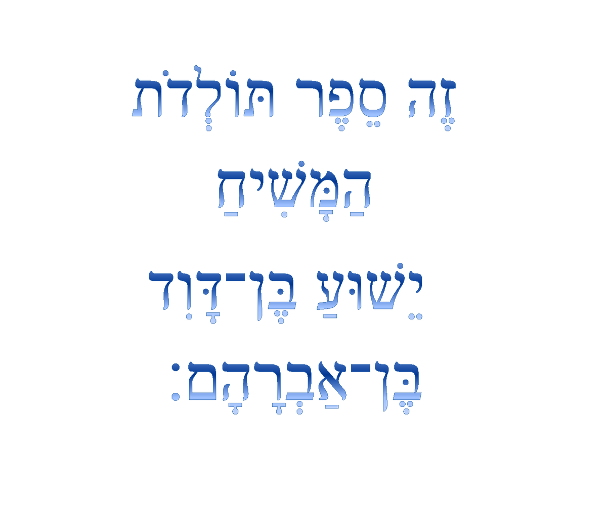 סֵפֶר תּוֹלְדוֹת יֵשׁוּעַ הַמָּשִׁיחַ בֶּן דָּוִד בֶּן אַבְרָהָם