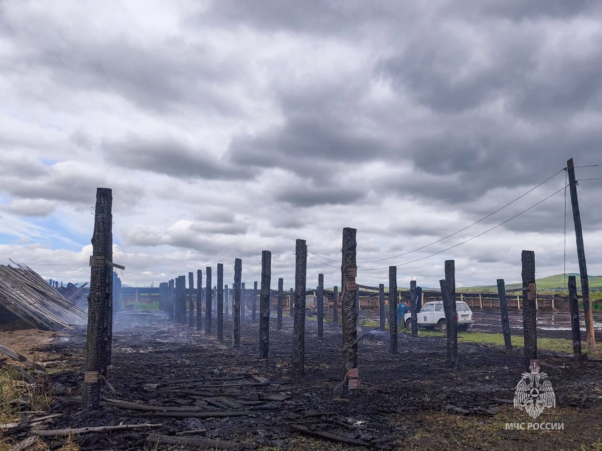 В Хакасии удар молнии вызвал пожар в коровнике. Коровы не пострадали В ночь на понедельник в степи в Боградском районе Хакасии на частной ферме загорелся коровник. Первыми к месту вызова прибыли добровольные пожарные из села Сарагаш. Площадь пожара составляла 750 квадратных метров. Коровы не пострадали. Причиной пожара стал грозовой разряд.