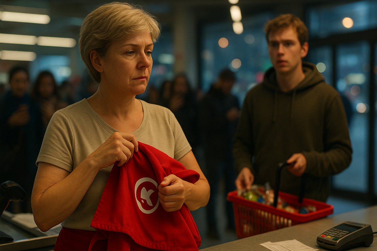 Через стеклянные двери было видно, как Артем остался стоять у кассы. Вокруг него — Ира, Олег, несколько покупателей. Все смотрели на него молча.
