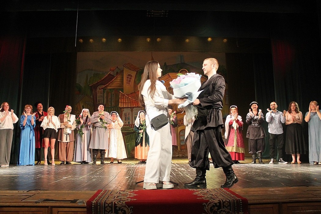 Шесть премьер и одна свадьба В Шахтинском драматическом театре подвели итоги юбилейного 95-го сезона. Прошедший сезон был ознаменован шестью премьерами. Два детских спектакля - "Соломенный бычок" и "Ёжик и ёлка" поставил Алексей Хомяков. Благодаря заслуженной артистке России Наталье Масловой репертуар пополнился такими значимыми постановками, как "Дом Бернарды Альба" по пьесе Федерико Гарсиа Лорки и "Не покидай меня" по пьесе Алексея Дударева в честь 80-летию Великой Победы. Приглашённые режиссёры поставили на шахтинской сцене русскую классику: "Волки и овцы" Островского - работа воспитанника Шахтинского театра а ныне главного режиссёра театра Воркуты Захара Комлева. Дмитрий Юмашев из Санкт-Петербурга поставил "Игроков" по произведениям Гоголя. Об этом вспоминали на торжестве, посвящённом закрытию сезона. С очередной вехой в творческой истории театрального коллектива поздравила труппу и зрителей исполняющая обязанности директора департамента культуры Наталья Журкина. Директор театра
