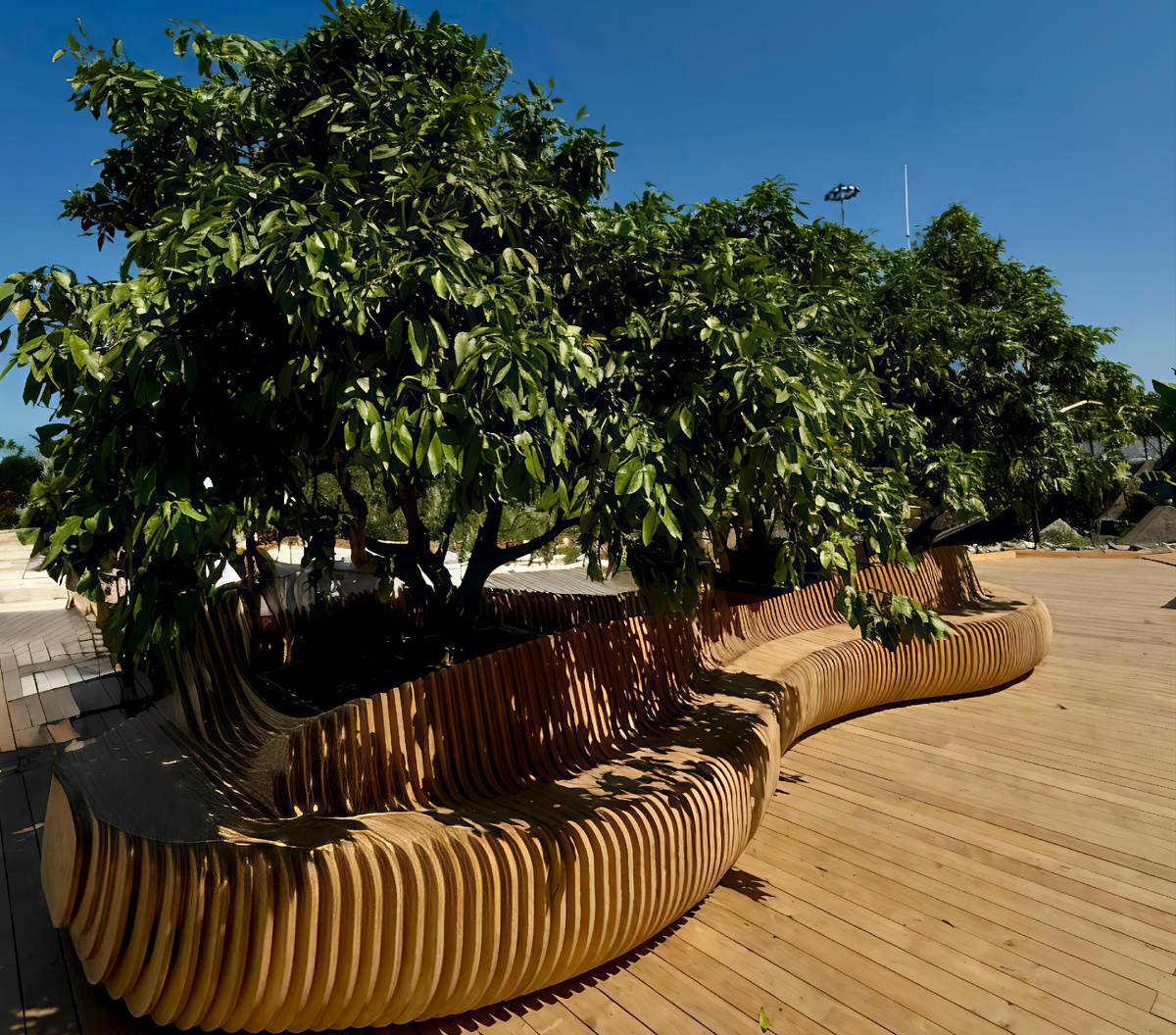 Для проекта использовали влагостойкую фанеру SVEZA ФСФ CP/CP — она отлично подходит для уличной мебели, даже в сложных условиях жаркого приморского города.