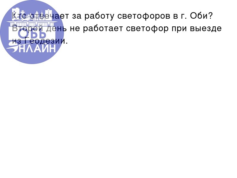 ↗ Кто отвечает за работу светофоров в г. Оби? Второй день не работает светофор при выезде из Геодезии.
