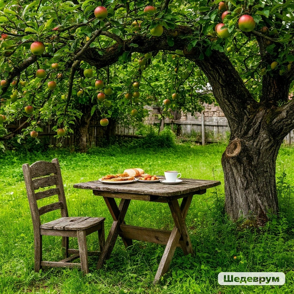 Девушка заварила чай, соорудила бутерброды из купленных по дороге продуктов и понесла все это богатство на массивный деревянный стол под старой согнутой ветрами яблоней.