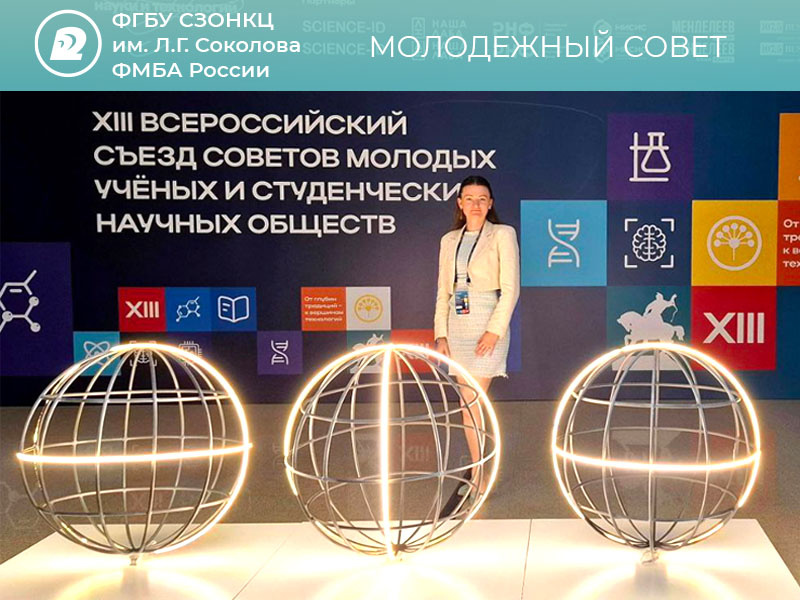 2 - 4 июля 2025 года в г. Уфа прошел XIII Всероссийский Съезд Советов Молодых Ученых и Студенческих Научных Обществ. Совет молодых ученых и специалистов ФГБУ СЗОНКЦ им. Л.Г. Соколова ФМБА России представляла начальник отдела образования, член совета молодых ученых ФМБА России Лебедева Инна Олеговна.